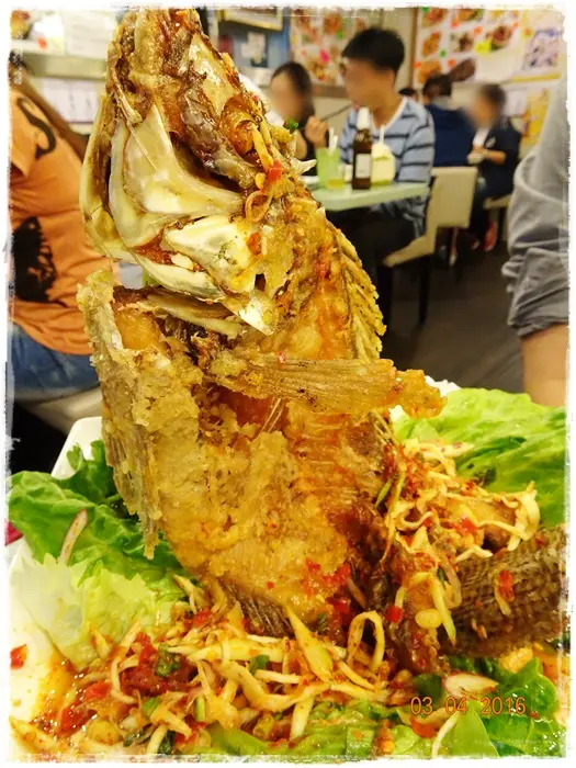 魚身炸到彎彎的, 後面用了一條香茅來支撐著魚身