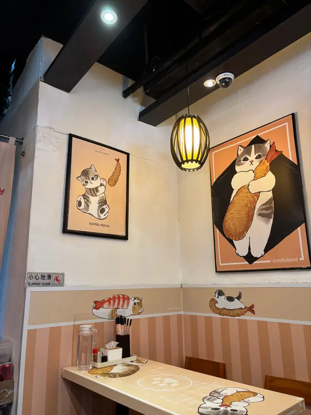 店內大量Mofusand佈置,枱同牆甚至連筷子套同紙杯都係Mofusand😆😆,好開心 (店員都着住件Mofusand衫)
