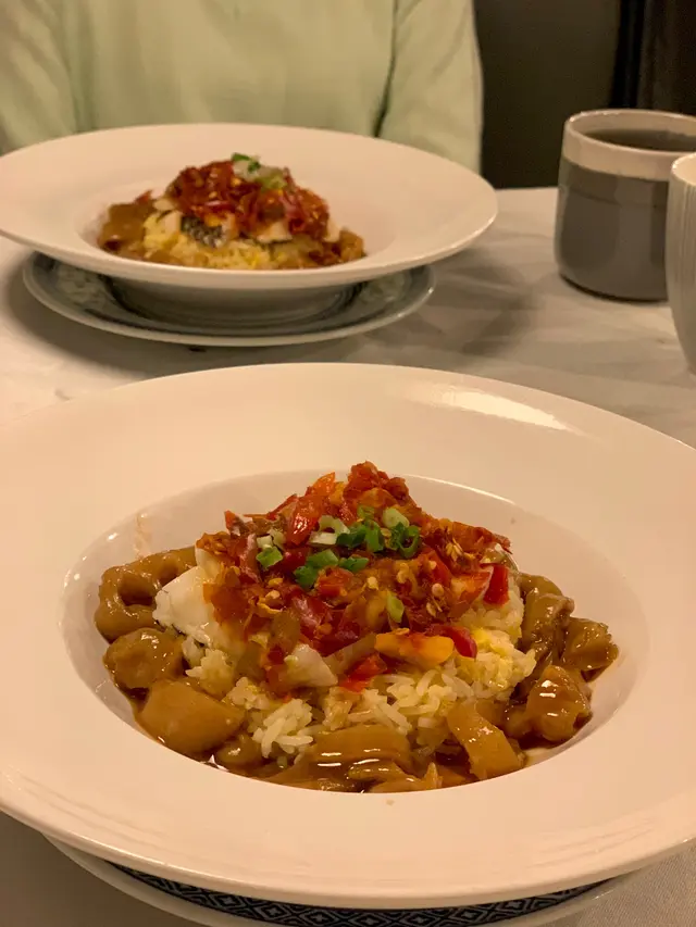 擺盤好靚,服務員建議撈埋一齊食。花膠炆完仲係好爽,又入味。仲要大大件,所以口感十分好。海鱸魚連埋魚皮,好滑。個飯仲要係蛋炒飯,好香,而且粒粒分明。撈埋一齊食辣辣地,惹味又開胃。