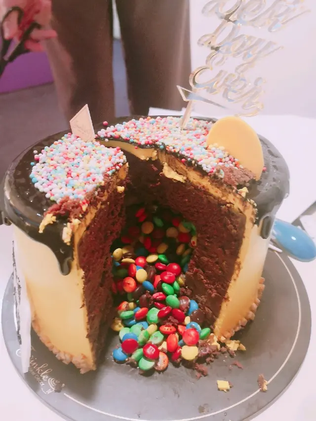 吸睛的蛋糕🤩 生日蛋糕不二之選🎂 sharon_yoLevel 22019-09-20555 views Follow 話說想買個蛋糕同朋友慶祝生日行過公司附近見到呢間蛋糕店覺得好靚呀 蛋糕又特別😍花多眼亂都唔知揀邊款😂😂😂最後揀左呢款蛋糕 外表睇落好colouful 價錢$358 唔算平 不過真係特別過出面既蛋糕款好多所以無所謂啦都買黎試下!切開仲有驚喜!!🥳🥳🤣🤣朋友表示完全估唔到有m&m hahaha一個搞笑既蛋糕裡面係朱古力蛋糕 幾好食唔會太甜不過係蛋糕外面果層麻麻好似一舊牛油咁 比較膩🤔🤔🤔但創意同埋外表搭夠啦The above review is the personal opinion of a user which does not represent OpenRice's point of view.LikeShare吸睛的蛋糕🤩 生日蛋糕不二之選🎂 Twinkle Baker Decor https://s.openrice.com/QrKT0bH0s00Report Post Ratings4Taste5Decor5Service5Hygiene4ValueDining MethodDine InSpending Per Head$358CelebrationBirthday