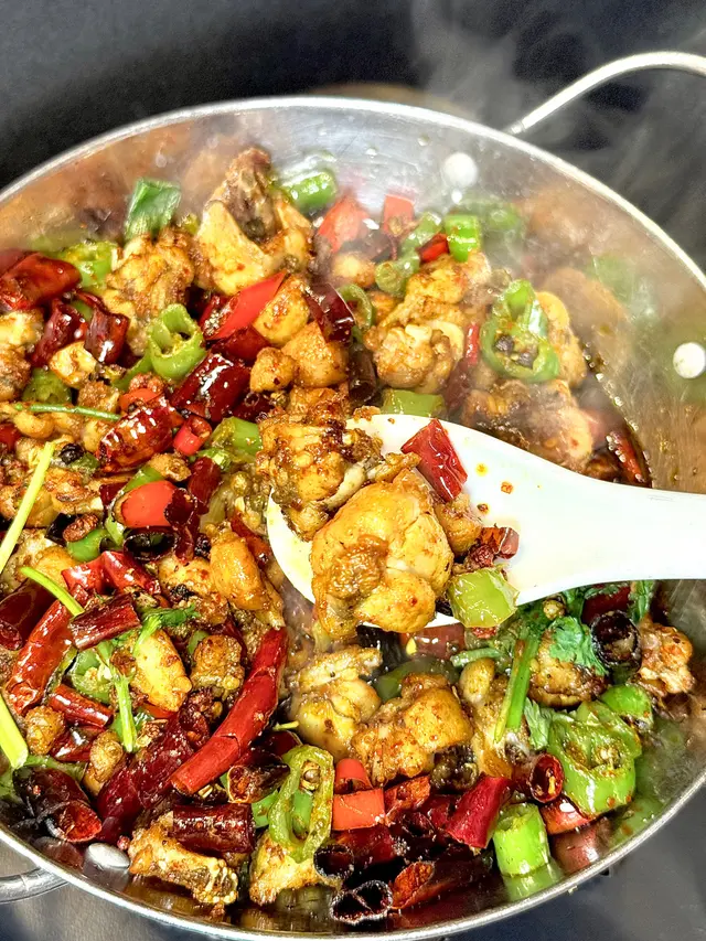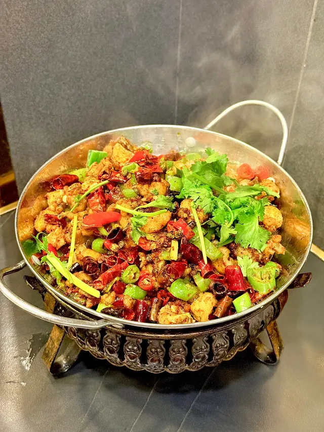麻辣乾香田雞肉超惹味,香口到犯規,越食越辣,飯都要嚟多碗🤣下面會點火加熱,小心辣手哦😆