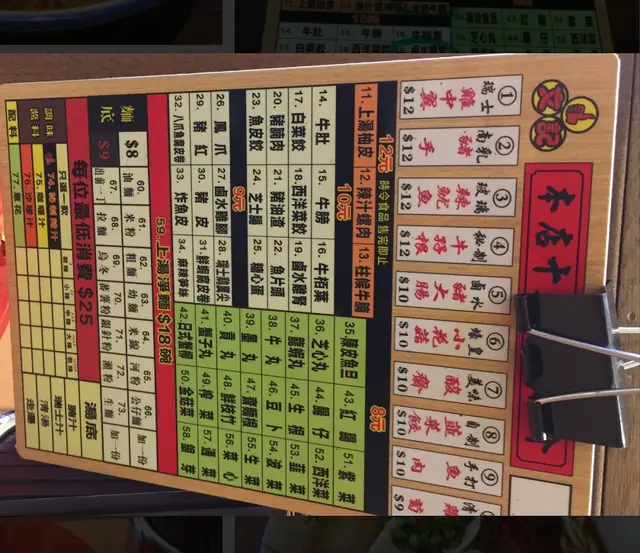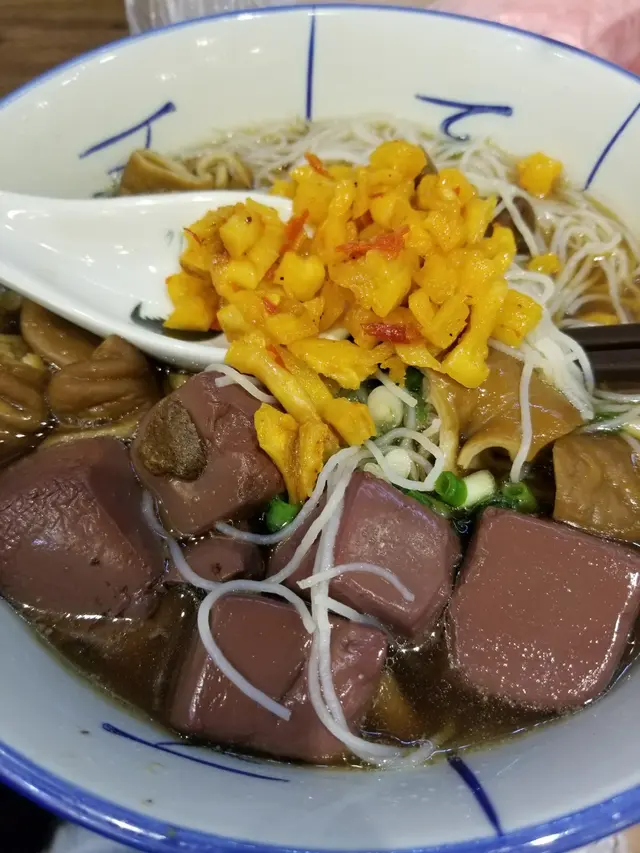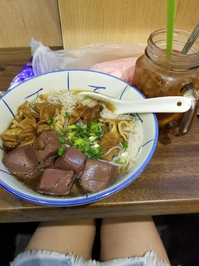 入去嗰時職員會畀 一塊用膠板整成嘅menu你,menu上面呢都有唔少嘅選擇, 仲有好多懷舊嘅小食添,而我今次就揀咗豬腸同豬紅配米粉,佢哋嘅豬腸 做到入曬味又唔會好難咬得開, 而嗰啲豬紅呢又好爽身, 完全冇怪味。 個湯底我就揀咗牛腩汁不過個湯底食落就好似有啲錢出前一丁公仔麵嘅味,響呢度就有少少扣分啦,不過食完之後都唔會太口乾。 不過好值得一提嘅呢就係佢樽冬菜,望落去好辣,但其實唔係好辣,加落d面度簡直一流呀👏👏