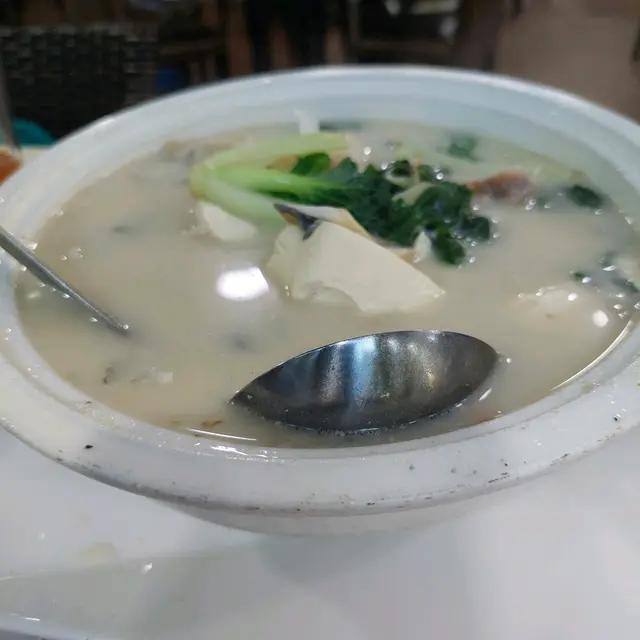 一道【豆付魚雲湯】$78,端上枱熱呼呼一大窩,翠緑的白菜、白白的豆腐、可見煎得蕉黃的魚頭,襯托着奶白的湯,看上去已忍不住,嘗一口,噢,濃郁的鮮,帶微微的薑味,半點腥味都沒有,美味極了。