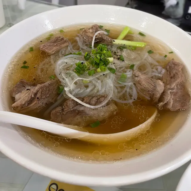 朋友叫了火五熟牛肉粉[改了湯檬],這是店裡的招牌菜之一。這道熟牛肉粉的湯頭味道非常鮮美。牛腩也煮得非常嫩,美味可口。