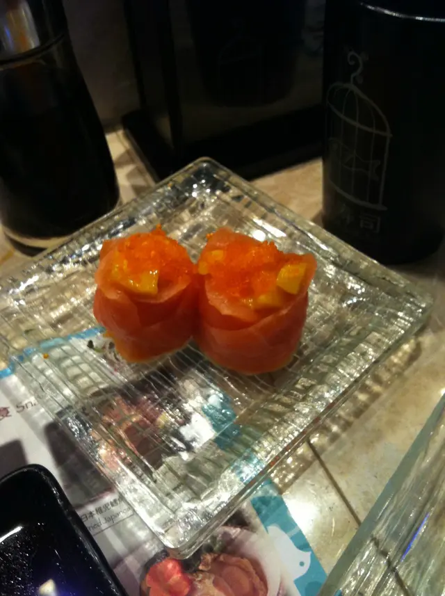 叫左不少野食, 分別有三文魚, 及帆立貝壽司, 兩者ge 味道都新鮮, 而且肉厚, 而相最上面果份芝士蟹柳壽司( $25 ) 係每次幫襯出示會員卡都會送ge , 年費$50, 每次幫襯除左會送一客壽司, 亦會以正價95折, 一年, 其實幫襯兩次 都賺返:) 味道 亦不錯, 淡淡ge芝士味唔會搶左蟹柳ge 鮮味,