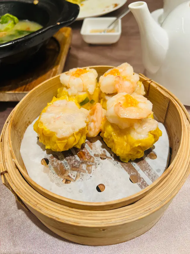 燒賣大粒紮實,外皮唔會太厚,餡料蝦肉比例高,配蟹籽提升鮮味及口感。蒸煮火候控制得好,無水淋或過熟情況,保持咬口。