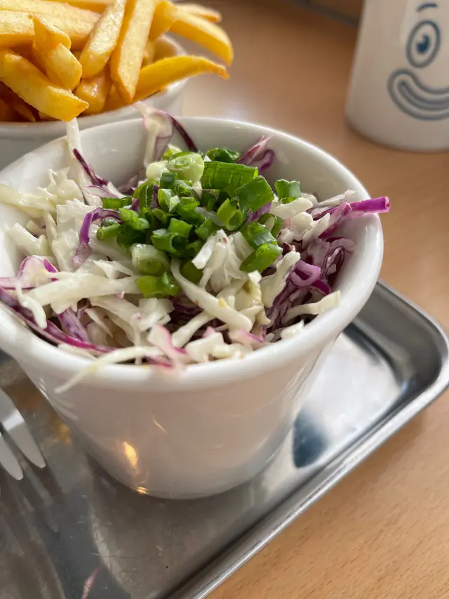 喂咪玩啦!成兜嘢冇Mayo或者是但啦你俾啲沙律醬,你食過Coleslaw未㗎究竟⋯⋯仲有蔥🙈我真係俾佢激死🙈