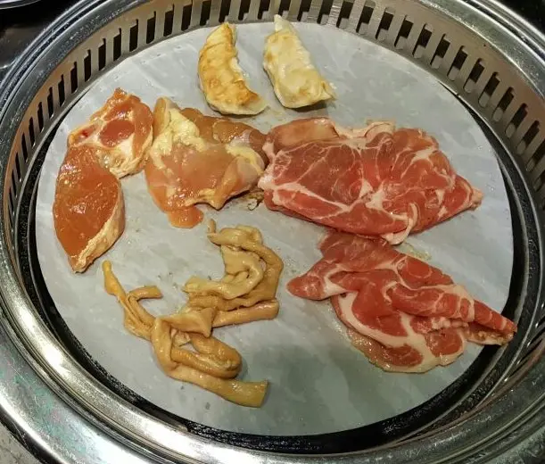 燒肥牛、豬扒、餃子同雞肉,揀完食材可以自己拿嚟燒,肉類紅白相間,而且舊舊都好大分量,燒嘅時候加些少自己鐘意嘅醬汁落去,熟咗之後會更加入味。
