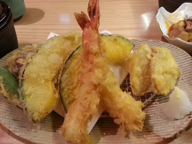 天婦羅有蝦 x2、南爪x2、蕃薯x2、青椒及菇 -炸粉夠薄,味道都可以
