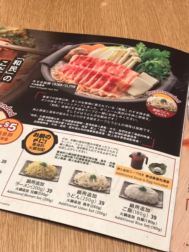 數數最吸引我的當然是牛肉壽喜燒(1人前)。壽喜燒可是和民的頭牌。從以前就一直在餐牌的頭頁。