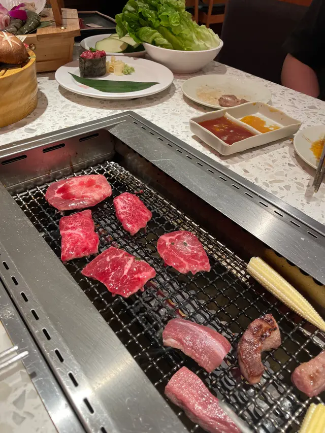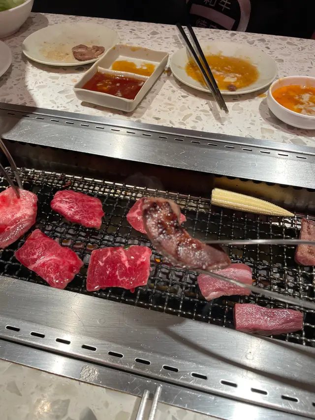 其中我最喜歡的就是第一款送上桌的和牛肉眼 店員會幫忙燒這一塊 後面的就是自助燒 另外牛舌和牛肋肉也是我的最愛 一個有嚼勁 另一個就是吃和牛的油香味 海鮮的話比較推薦魷魚 由於和牛吃起來比較膩 魷魚可以平衡一下 最後還有飲品和雪糕 幸福滿滿的一天
