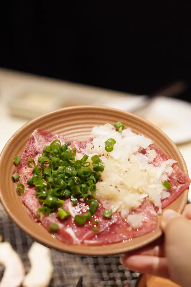 薄燒上等牛舌芯, 仲可以揀配上蔥花一起燒,比起厚切更容易控制火候。
