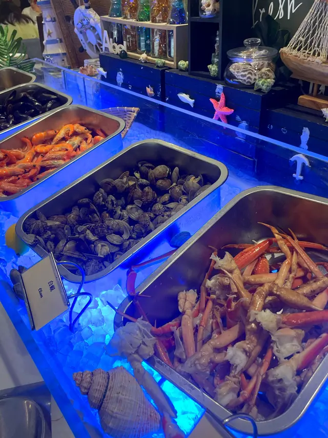 黎食自助餐海鮮一定係主要戰場🦐🐟🦞🦑佢哋嘅凍海鮮有四款,有青口、蝦、蜆同埋蟹腳,四款入邊我哋最鍾意係蟹腳(畢竟就係因為蟹腳所以想食自助餐😛😛😛)佢哋嘅蟹腳海水味比較重,但係幾有彈性~