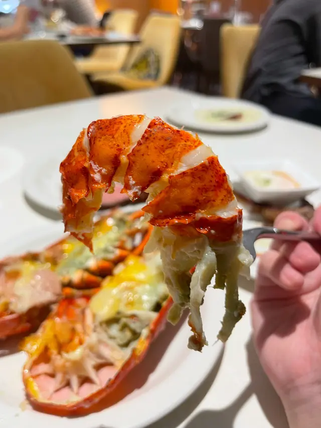 除咗凍海鮮之外,佢哋都有好多以龍蝦為主題嘅食物款式,每人會有一隻鵝肝醬芝士焗波士頓龍蝦,個醬汁幾濃味🦞🦞🦞另外亦有酥皮龍蝦湯、牛肝菌牛柳粒龍蝦炒飯同埋泰式辣醬爆炒龍蝦,幾多選擇🍛🍛🍛