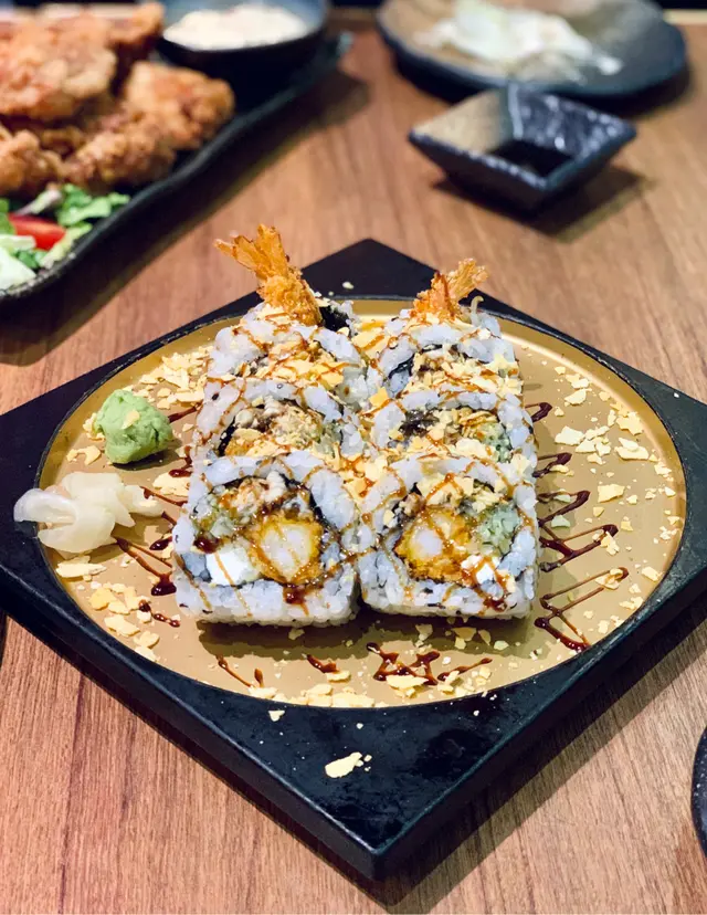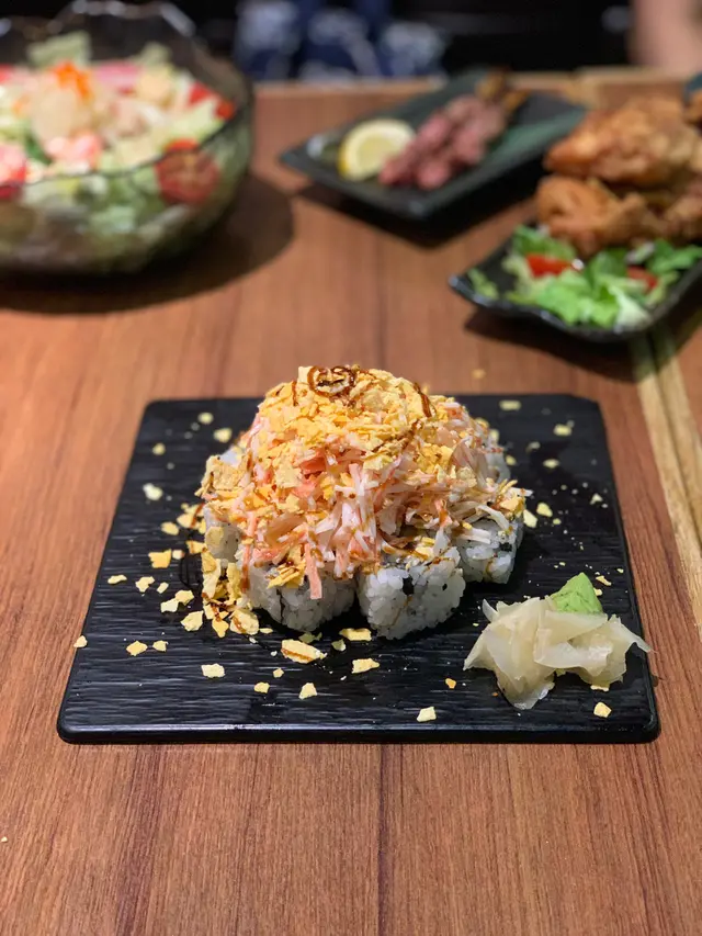 有八至十件,卷物裏面有牛油果和鰻魚,再鋪上海量蟹柳和脆片, 口感豐富,有心思。