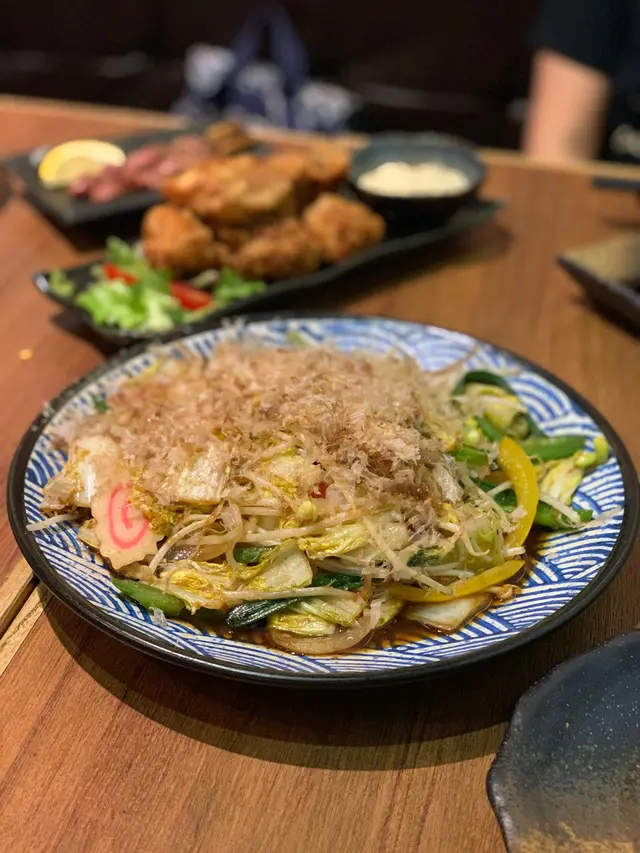 份量又是超級多,材料又是非常豐富,有椰菜、洋蔥、彩椒、芽菜、鳴明卷等,再蓋上一大堆木魚絲,味道鮮甜可口。