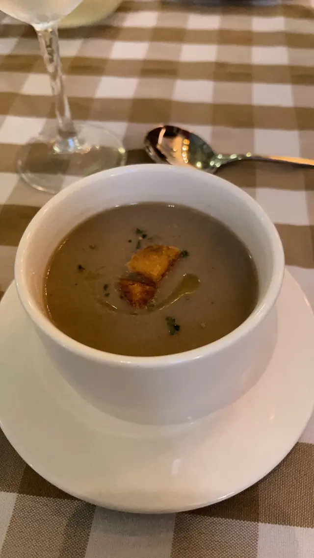 這碗忌廉蘑菇湯的色澤深邃,其細緻的口感加上淡淡的忌廉香,每一口都充滿了濃厚的蘑菇風味,與香酥的麵包相得益彰,為接下來的美食鋪路。