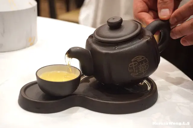 以小小一壺紫砂茶壺配一個小杯子, 自行一杯杯倒出, 慢慢品嚐, 湯汁熱辣辣, 味道濃郁滋潤, 飲落好暖胃, 內有好幾件肉粒同埋冬蟲草, 好飲得連湯渣都清埋。