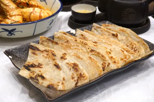 四隻虎蝦肥美肉厚, 入口爽彈, 奶油質地不是杰身, 但奶油味濃郁帶微辣, 配上手抓餅用作沾點奶油汁, 吃盡奶油嘅精華, 回味!