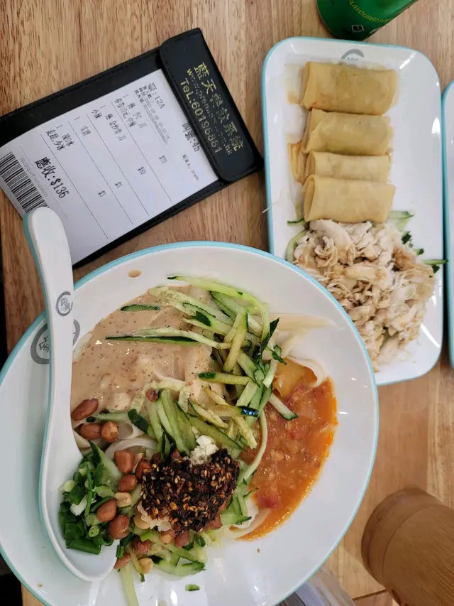 中午時間很迫,通常都要等位和搭枱。不過份量很足夠,而且價錢算是中規中矩,但絕對合性價比。我點了一份雞絲,但是相對來說有點乾,口感稍微有些「鞋」口。另外我也點了春卷,它是最普通的平時凍肉舖買到的那種春卷,但是炸得還算正常。