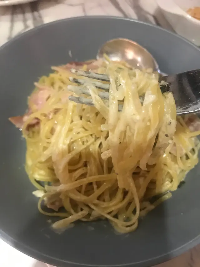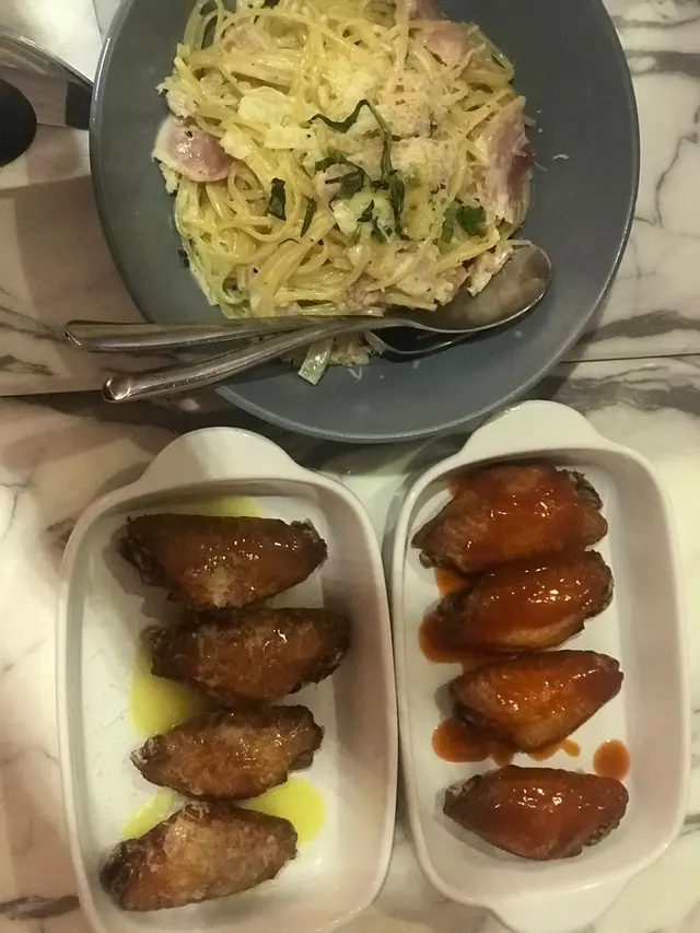 特別想同大家講一講呢一度嘅pasta,今次叫咗呢一款係意大利煙肉意粉,一般來講係專食Pizza嘅食店都唔會對佢嘅pasta好有期望,不過呢一度嘅真係唔錯。麵質軟硬度適中,最重要嘅係佢調味調得幾好,有忌廉味但係唔漏因為同時配合左洋蔥。煙肉嘅粉量都有好多。如果大家唔夠飽值得推介嘅係可以試吓佢嘅雞翼,唔會帶得過熟,而且醬汁配合幾好,特別值得一試嘅係蒜香牛油雞翼。
