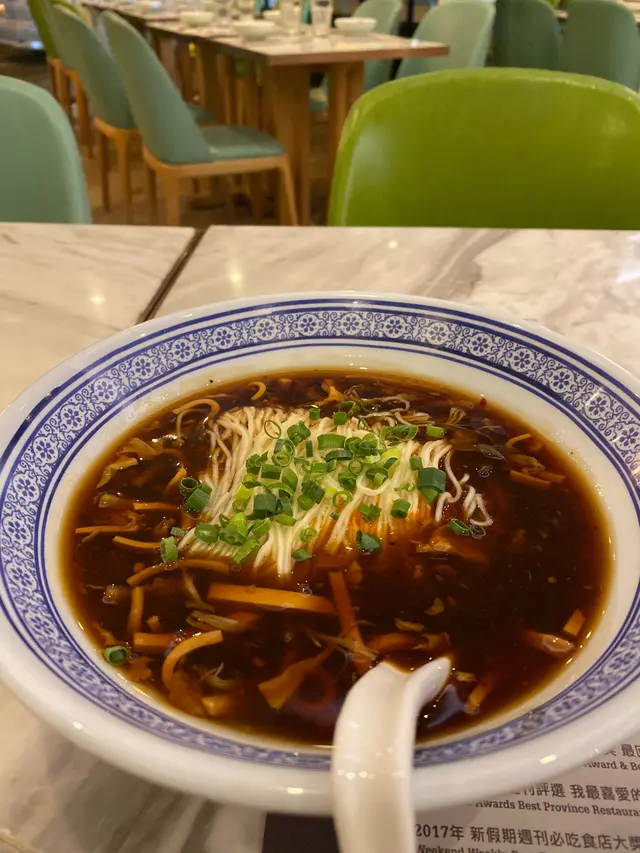 老上海酸辣粉湯底唔夠濃 酸又差啲辣又唔夠辣 係啲雲耳竹筍蝦嘅味道不錯