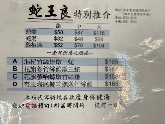 林林總總嘅燉湯同蛇湯。