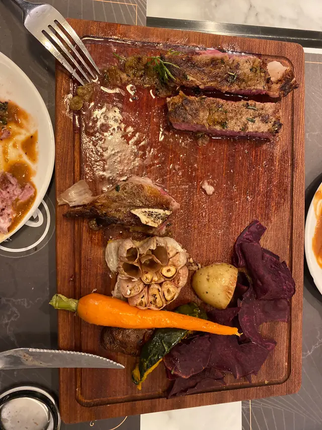 經過看到二人肉眼扒套餐,便進去試試。 二人套餐,萬萬想不到除了龍蝦湯一人一碗,麵包一人一個之外,沙律同牛扒都系一份上,我們自己分,牛扒自己切。 從沙律,麵包,牛扒的碟都系同一款圓形白碟。 牛扒叫了medium,來到像Medium Rare,重點系有三分之一系咬唔到的,那份醬汁連連鎖速食店的也比不上。