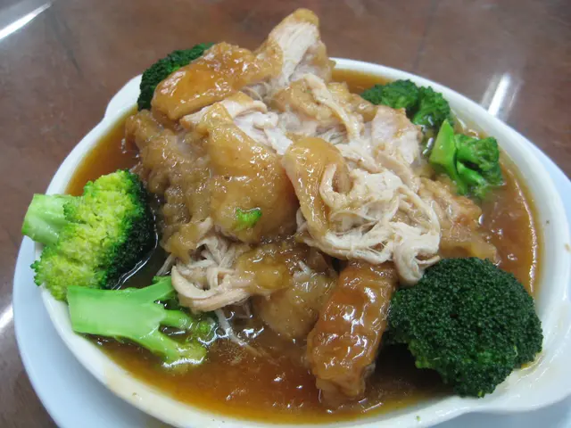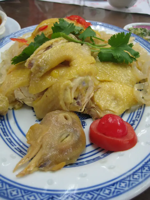 贵妃鸡(半只)。差不多就是白切鸡。长相挺面善的,申请给它盖一个党旗。旁边的海蜇丝让我很惊喜,搭配着吃别有风味