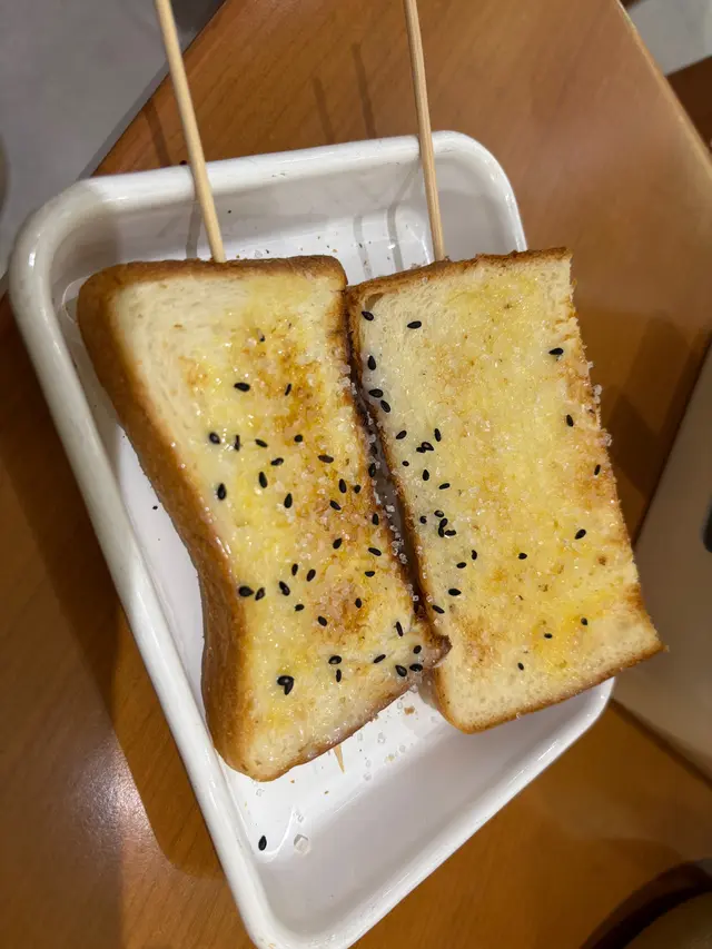 多士好鬆軟,表面係糖配芝麻,串燒必食!