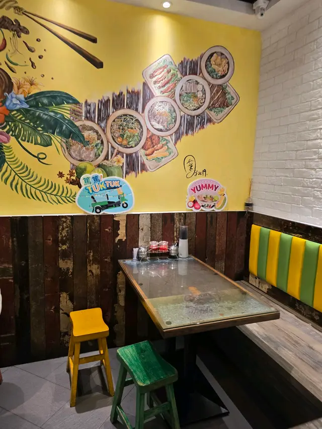 呢度出名船麵,不過見到撈金邊粉好吸引。顏色同一般炒金邊粉一樣,都係橙紅色,酸酸甜甜,最大嘅分別就係無左豆腐乾,同埋餸放一邊。原本想食豬頸肉,午市都好多人叫,豬頸肉原來要醃三個鐘,所以賣曬無咁快補到,所以我就改食豬扒啦!豬扒煎得幾香,點埋個泰式醬汁,酸酸甜甜,少少芫荽子,雖然口感唔同,但味道係平時食豬頸肉嘅味。