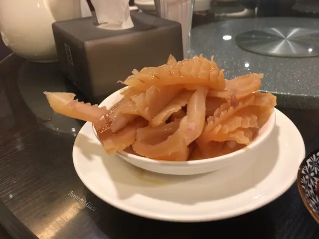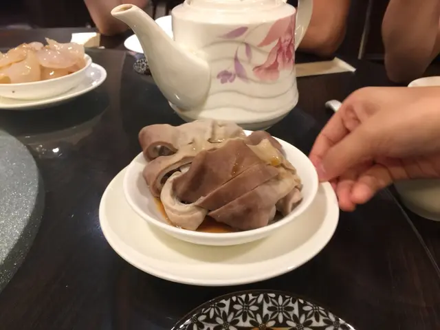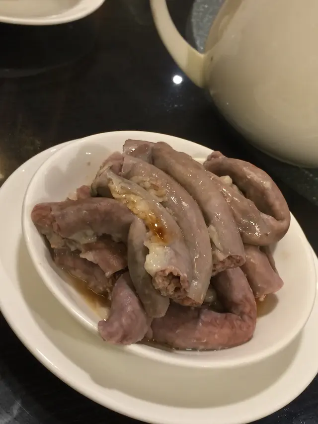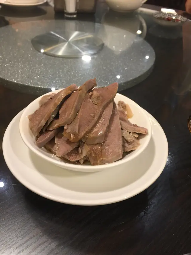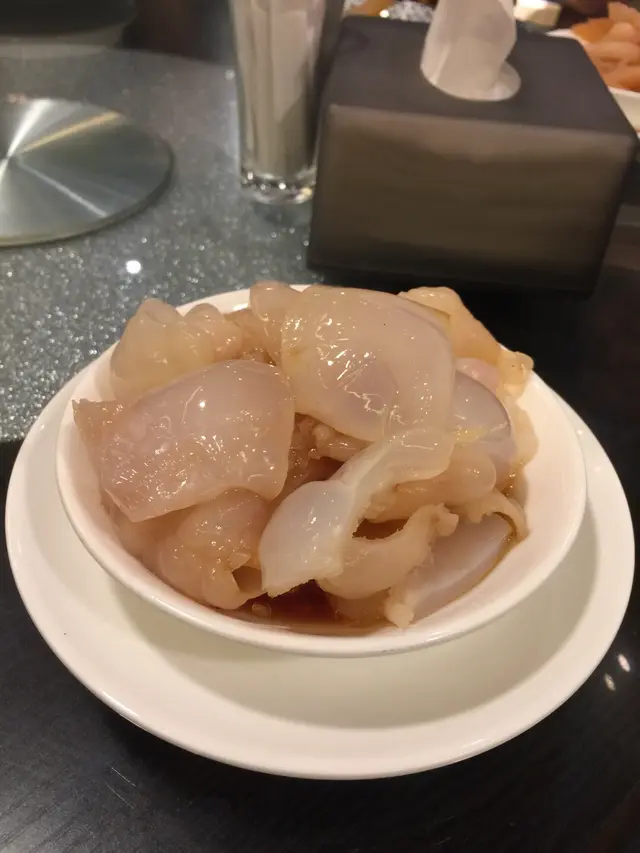 聽餐廳經理推薦,試了這裡的有名前菜「六小福」,其實分別是:豬脷、豬肚、豬小腸、韮菜、尤魚,海踅頭。