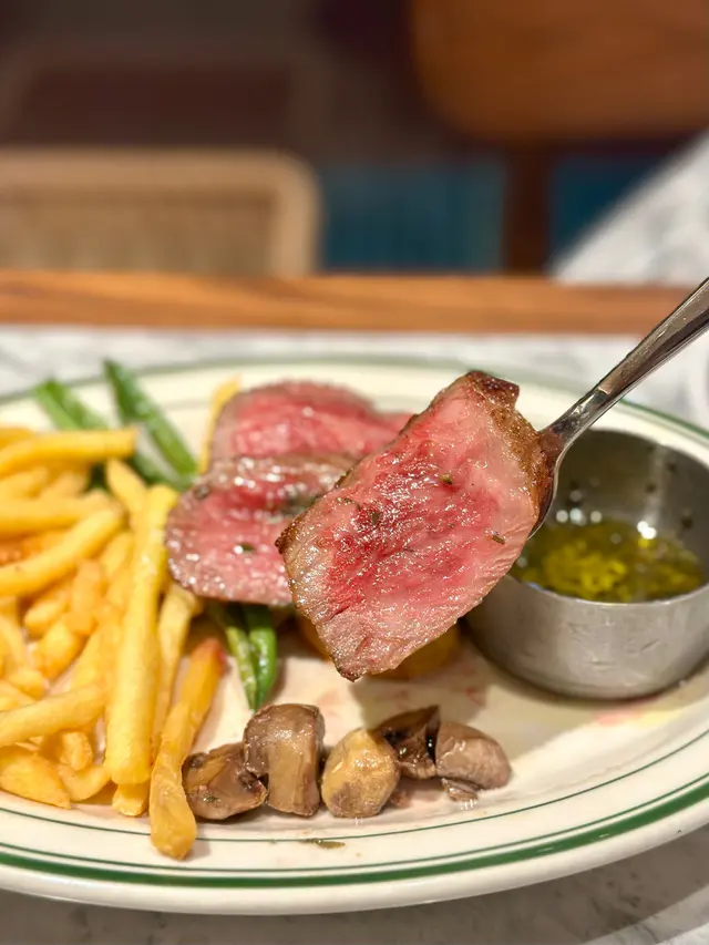採用來自北海道的十勝產和牛,有三款部分:內裙肉、牛腹扒及牛小排 (+$30),聽了店員講解每個部位後,最後選擇了油花豐富,肉味濃郁的牛小排。肉質鮮嫩,外層煎至微焦脆,中間粉嫩多汁,配搭香蒜青醬,味道更香更滋味。伴碟有炒蘑菇及烤雜菜~