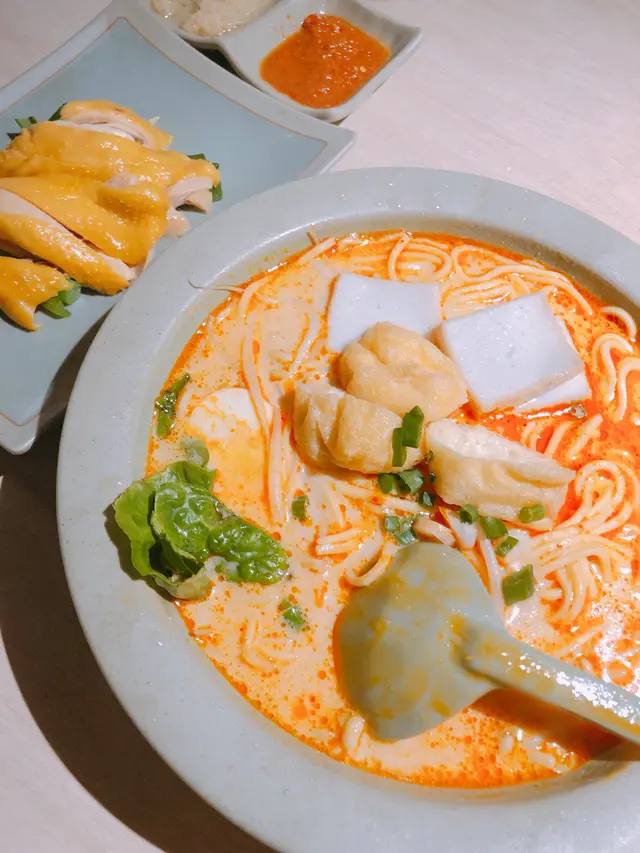 麵底選擇多,我地就揀左兩碗喇沙湯拼海南雞及軟殼蟹摻摻麵底😉