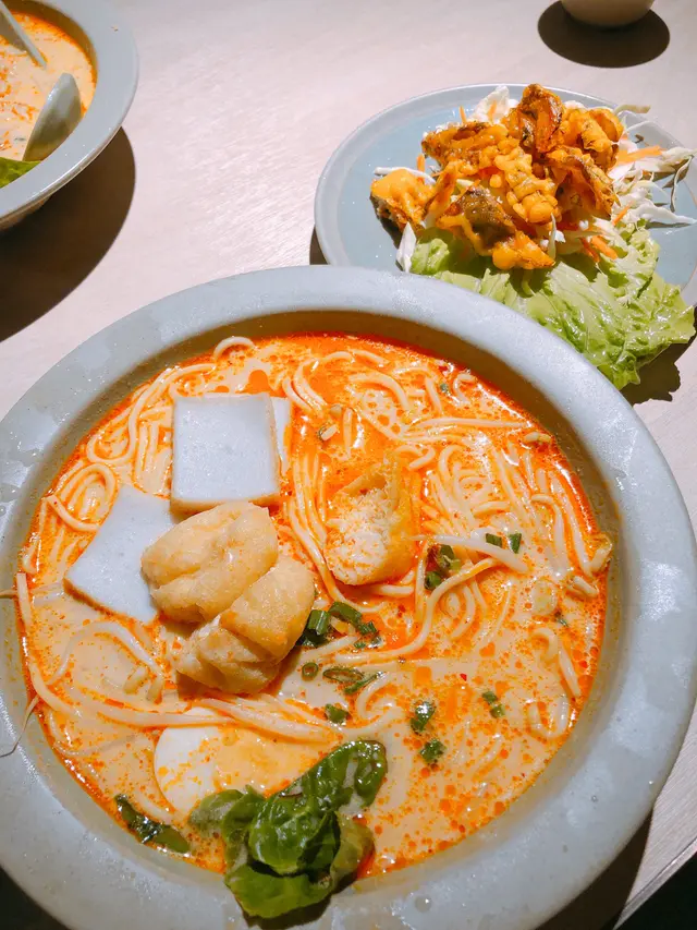 喇沙湯麵料好足,湯底夠濃郁,份量大,除配料外,湯底已配有流心蛋、豆卜、魚片,我地比較喜歡海南雞,軟殼蟹做得不太新鮮亦不脆🤨