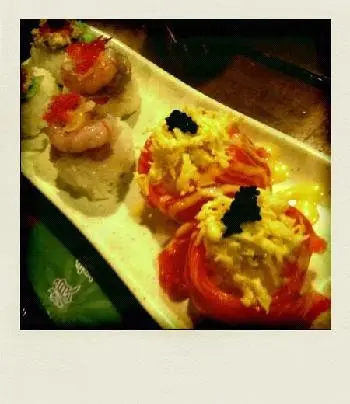 壽司卷物果方面佢地都做得唔錯、不過海膽手卷就有D搵笨囉…成舊手卷得果DD咁多海膽、擺左落口都唔覺,,炸物方面就叫左'汁燒牛舌'同'雞腎'黎食、味道冇乜特別、其他仲有天婦羅之類、我就覺得食唔食都擺…點左碟炸軟殼蟹黎食都係覺得唔得囉、好厚粉之餘、仲要好霉、NO GOOD而