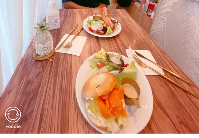 煙三文魚忌廉芝士維也納包配沙律