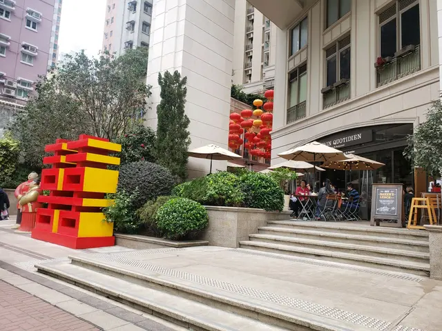 Le Pain Quotidient 在利東街街口, 莊士敦道電車沿路經過時可遙望到,位置上佔了地利。門外還豎立了巨型雙喜標誌及趣緻的喜慶華服紅衣男女,像喜帖街的地標,十分吸晴,每次經過都不期然駐足觀看。