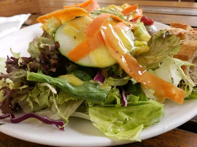 前菜沙律有羅馬生菜、紫椰菜 、青瓜 、櫻桃蘿白、甘筍切成長條。