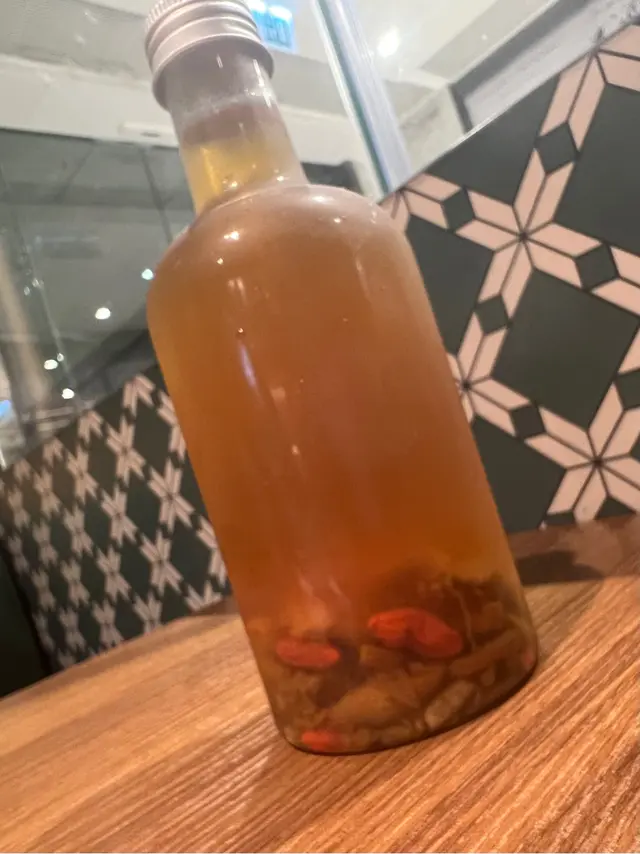 飲品選擇了店內的手作糖水系列,分別是蘋果雪梨無花果和敦煌杏皮茶。前者清潤爽口,後者則帶有一絲酸味,很能開胃,與濃郁的麵食形成絕佳的搭配。