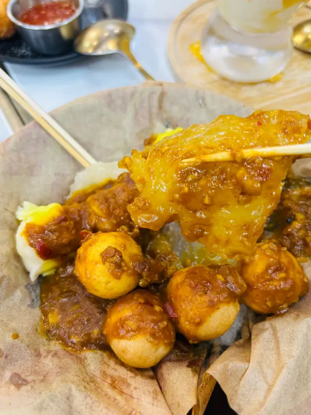 不僅是甜品,這裡的港式咖喱三寶(燒賣、豬皮、魚蛋)**也是必試!香濃的咖喱搭配經典的港式小吃