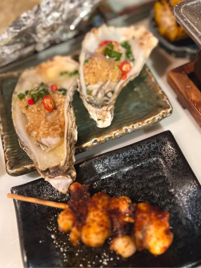 食物繼續係高質啦~ 燒烤堂嘅海鮮串燒 - 推介元貝、生蠔同埋蟶子, 每一樣都新鮮又香口- 燒蟶子啱啱好熟, 保持咗嫩滑嘅口感~ 元貝外層略帶焦香, 鮮甜多汁, 多春魚係小編新嘗試, 都唔錯, 味道偏原始唔重調味~