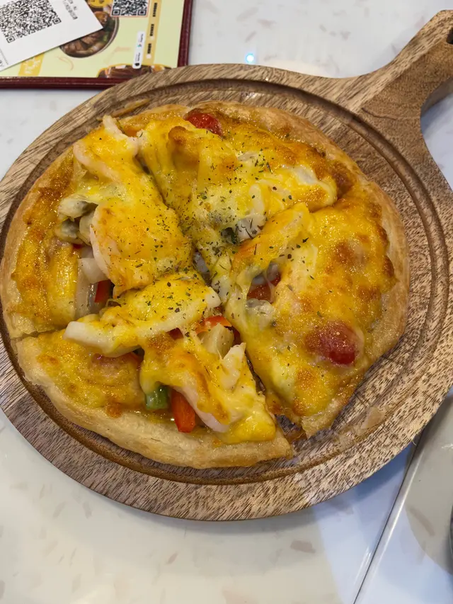 第二款主食是自家秘製茄醬鮮果海鮮烤餅批,pizza份量不算很大,但由於餅底不是薄批,餡料不少,味道亦不錯,兩人食也夠滿足。