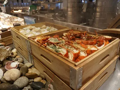 今期 cafe TOO推出海洋盛宴海鮮自助晚餐,主打生猛海鮮,包括龍蝦、蜆、海螺、蝦、花蟹等,選擇琳琅滿目。