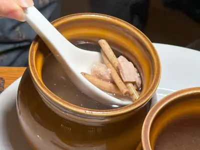 還有原盅五指毛桃燉湯,相當足料,滿載椰子香,還具有補脾健胃、增強免疫力等功效,難怪大受歡迎!