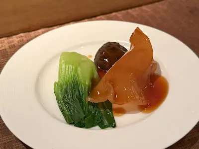 女士們,當然必食招牌菜式 - 翡翠鮑汁慢火煨製花膠,豐腴的花膠充滿豐富膠原蛋白,搭配冬菇、小棠菜,以及濃郁醬汁,相當矜貴。