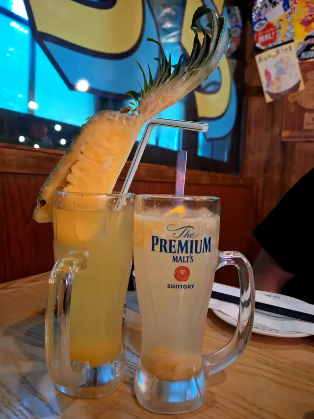 菠蘿梳打就更合女仔口味,菠蘿蓉果味滿滿。職員好貼心端上碟和刀叉,方便移開杯邊的冰菠蘿慢用,作為飯後甜品不錯。