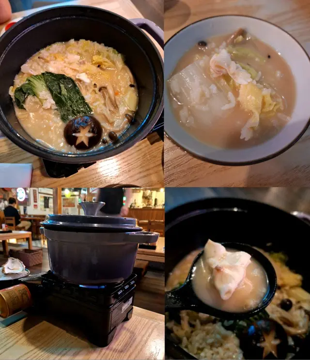 即席以gas爐在我們面前加熱魚湯,鑄鐵鍋的熱力有助魚湯滲入白飯中,保温效果亦好好。