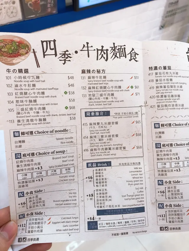 我本身就想食辣的,問了一下店員,原來地獄三盛牛肉麵辣的程度是非常高。店員還說,如果不是吃得很辣的,建議還是吃養生清湯比較好。清湯有清湯的好處,就是湯底有著非常濃厚的藥材味,配上腱心牛肉、牛腩和牛丸,味道更加配合。