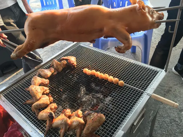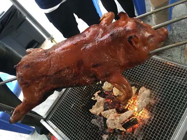 講下隻燒豬先,一拎過黎就已經心心眼!因為一直都好想咁樣燒乳豬!個大小係標準乳豬個大小,睇落唔錯!跟住教學咁燒,開頭係唔洗點理佢,等每十五分鐘先搞下佢!都唔難燒!可以安心燒下腸仔醫下肚先!燒到隻豬有d起色,我地就交左比專人同我地燒,哈,保證一定燒熟,自己未必全熟,話哂新手交比人燒安全啲!